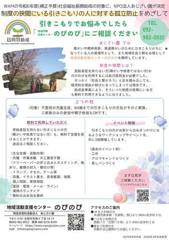 独立行政法人 福祉医療機構(WAM=ワム)の、令和6年度(補正予算)社会福祉振興助成事業に、私たちあじさい園が採択されました。
